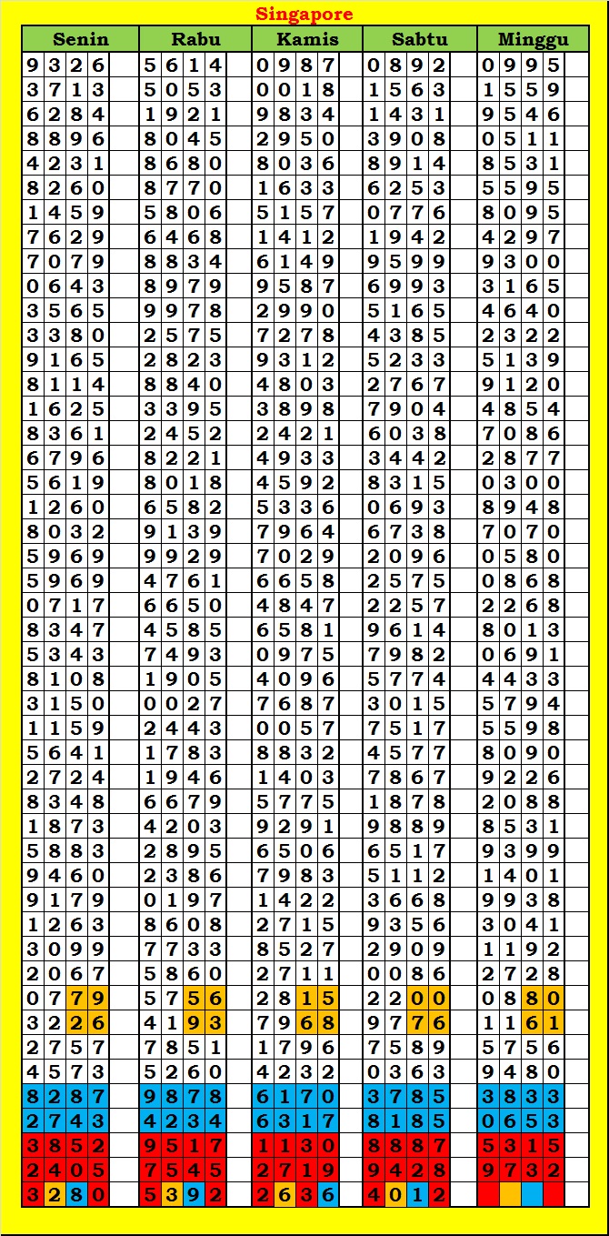 MASTER SINGAPURA Senin, 02-02-2026 Merupakan Prediksi Otomatis yang menggabungkan Metode Kalender Togel Dengan Rumus-rumus kontrol yang sudah terbukti keakuratanya.Gunakan Aplikasi Rekap untuk mendapatkan LN TOP. Harap Maklum Jika kadang meleset MASTER SINGAPURA kita. Jadikan ini sebagai perbandingan saja dan tetap UPS