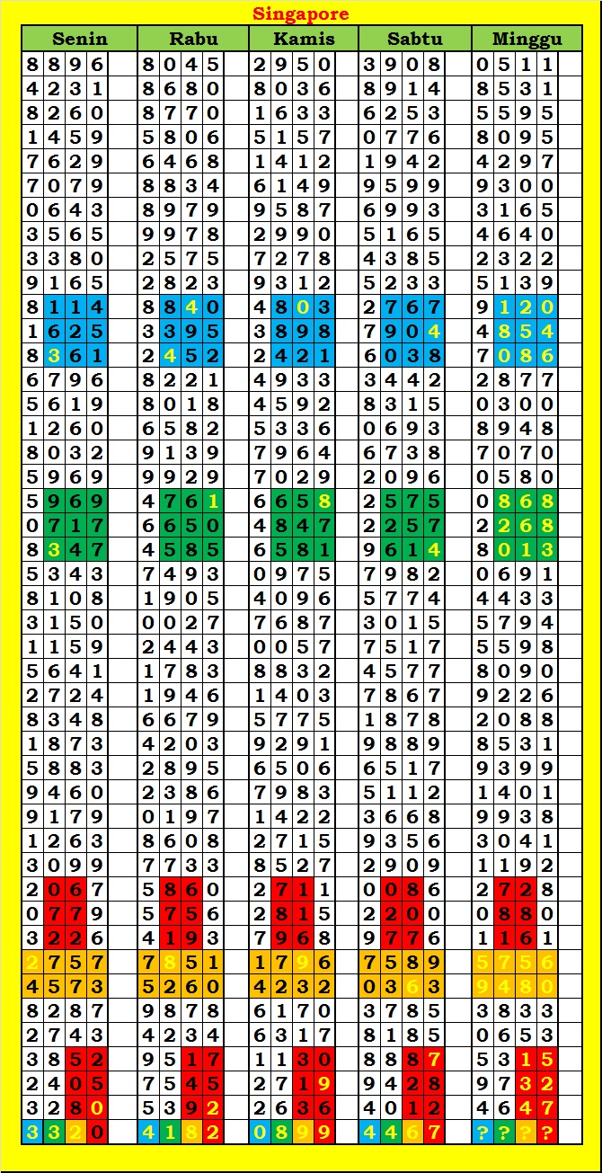 MASTER SINGAPURA Senin, 02-02-2026 Merupakan Prediksi Otomatis yang menggabungkan Metode Kalender Togel Dengan Rumus-rumus kontrol yang sudah terbukti keakuratanya.Gunakan Aplikasi Rekap untuk mendapatkan LN TOP. Harap Maklum Jika kadang meleset MASTER SINGAPURA kita. Jadikan ini sebagai perbandingan saja dan tetap UPS