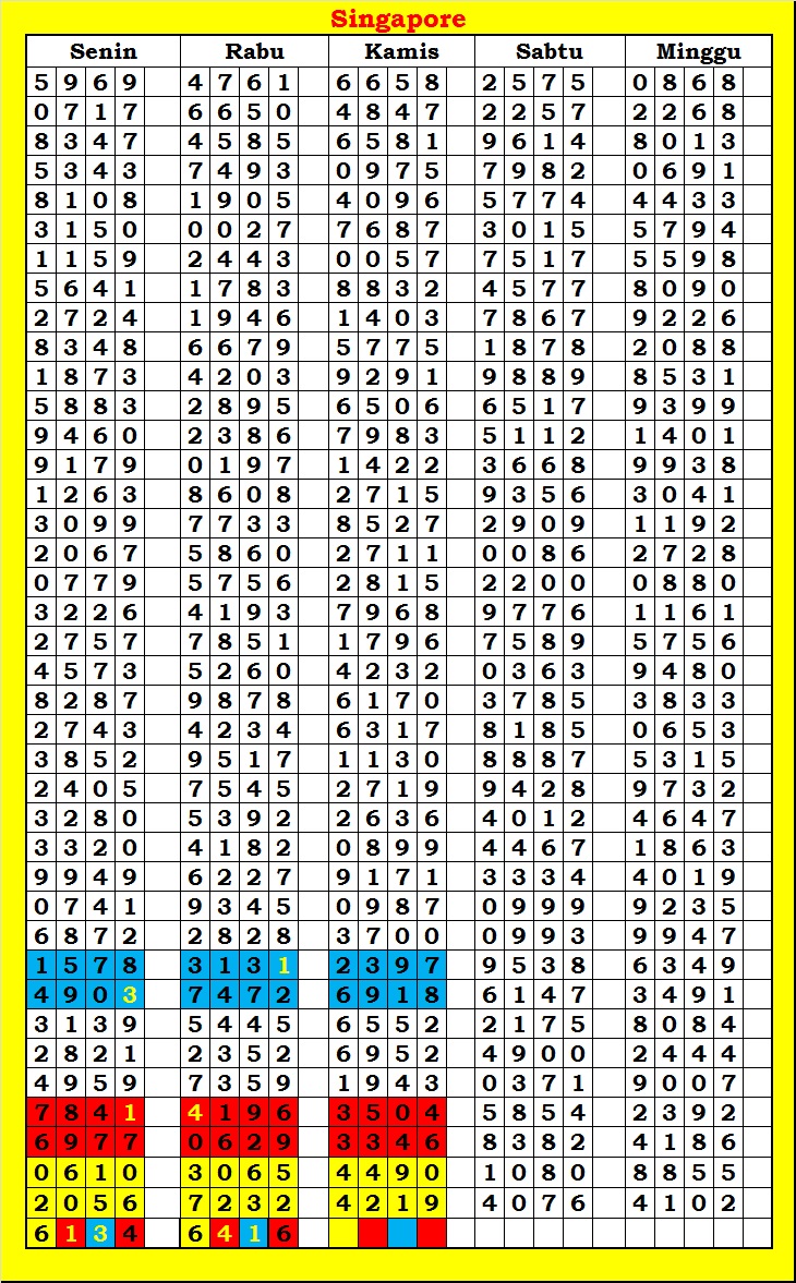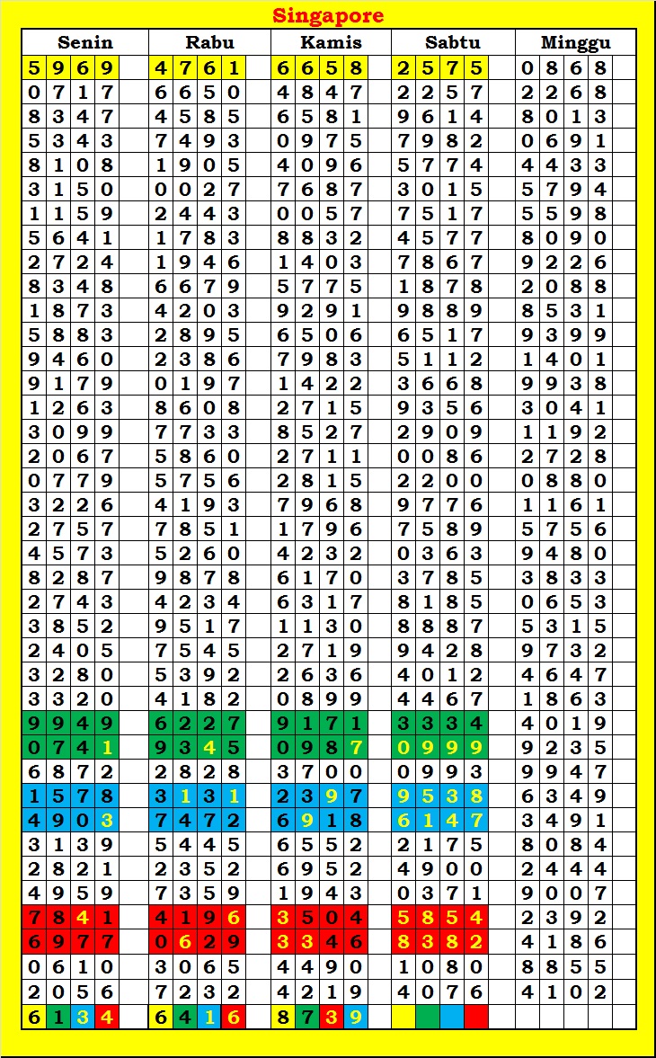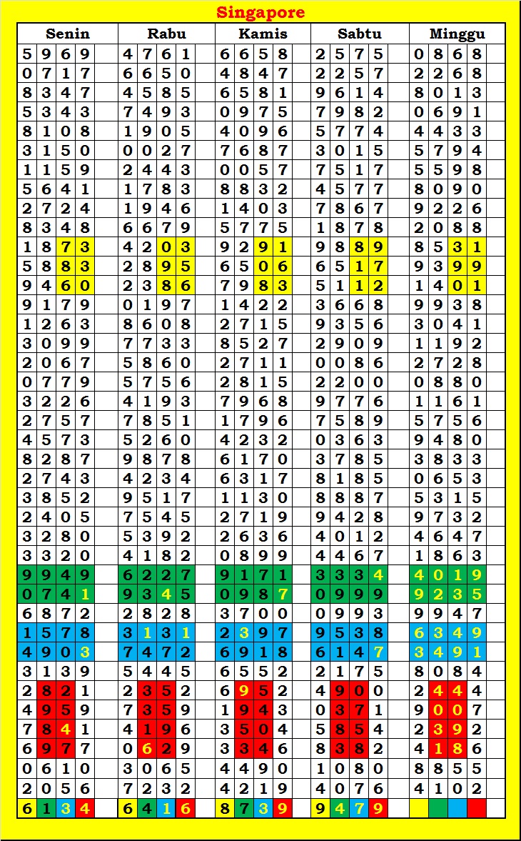 MASTER SINGAPURA Sabtu, 31-01-2026 Merupakan Prediksi Otomatis yang menggabungkan Metode Kalender Togel Dengan Rumus-rumus kontrol yang sudah terbukti keakuratanya.Gunakan Aplikasi Rekap untuk mendapatkan LN TOP. Harap Maklum Jika kadang meleset MASTER SINGAPURA kita. Jadikan ini sebagai perbandingan saja dan tetap UPS