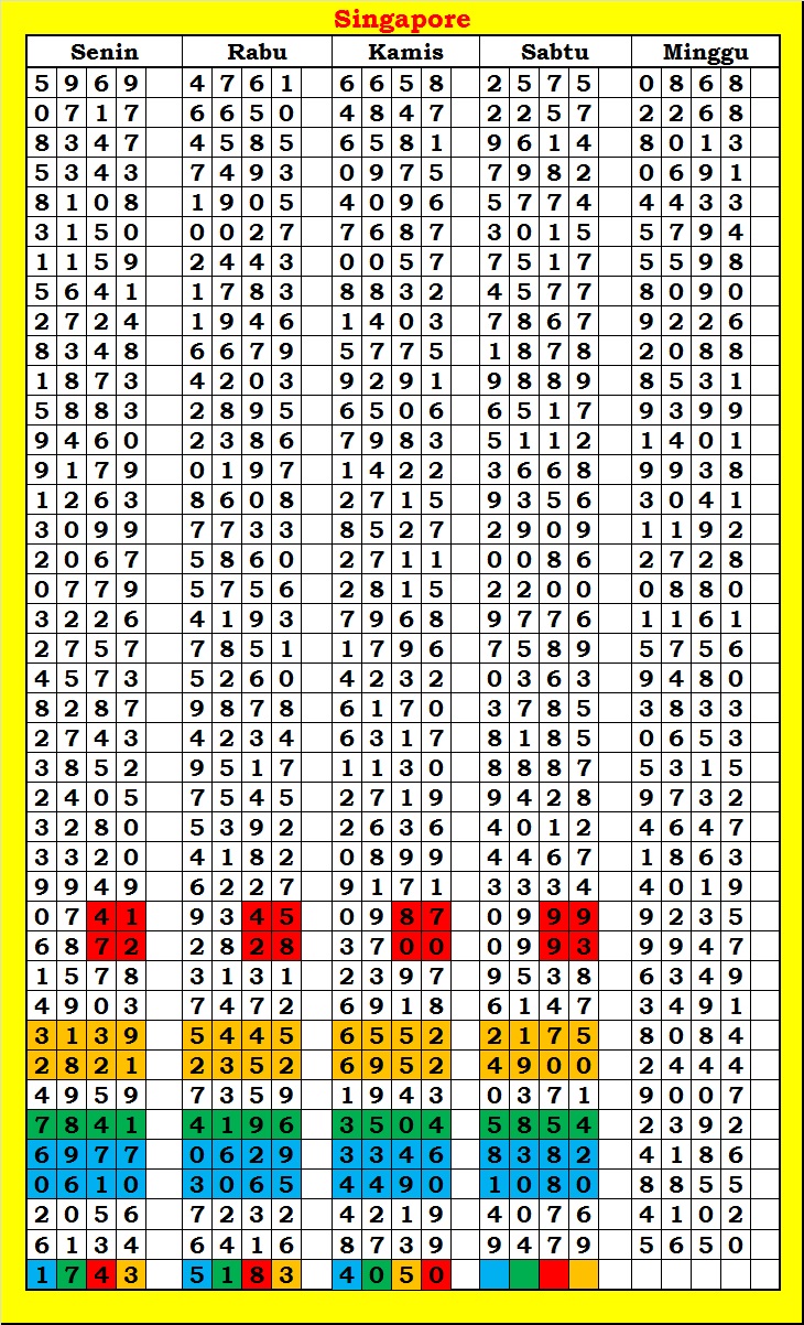 MASTER SINGAPURA Sabtu, 31-01-2026 Merupakan Prediksi Otomatis yang menggabungkan Metode Kalender Togel Dengan Rumus-rumus kontrol yang sudah terbukti keakuratanya.Gunakan Aplikasi Rekap untuk mendapatkan LN TOP. Harap Maklum Jika kadang meleset MASTER SINGAPURA kita. Jadikan ini sebagai perbandingan saja dan tetap UPS