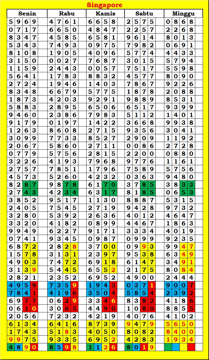 MASTER SINGAPURA Sabtu, 31-01-2026 Merupakan Prediksi Otomatis yang menggabungkan Metode Kalender Togel Dengan Rumus-rumus kontrol yang sudah terbukti keakuratanya.Gunakan Aplikasi Rekap untuk mendapatkan LN TOP. Harap Maklum Jika kadang meleset MASTER SINGAPURA kita. Jadikan ini sebagai perbandingan saja dan tetap UPS