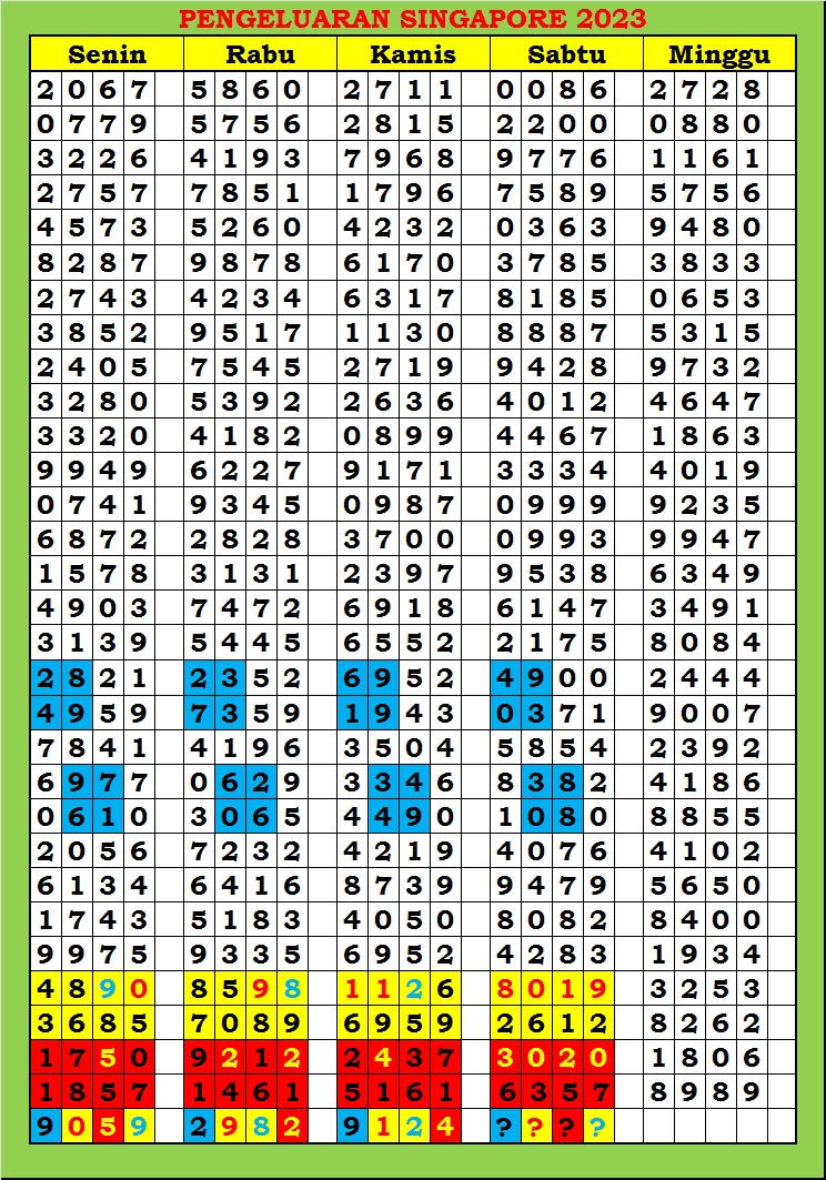 MASTER SINGAPURA Sabtu, 31-01-2026 Merupakan Prediksi Otomatis yang menggabungkan Metode Kalender Togel Dengan Rumus-rumus kontrol yang sudah terbukti keakuratanya.Gunakan Aplikasi Rekap untuk mendapatkan LN TOP. Harap Maklum Jika kadang meleset MASTER SINGAPURA kita. Jadikan ini sebagai perbandingan saja dan tetap UPS