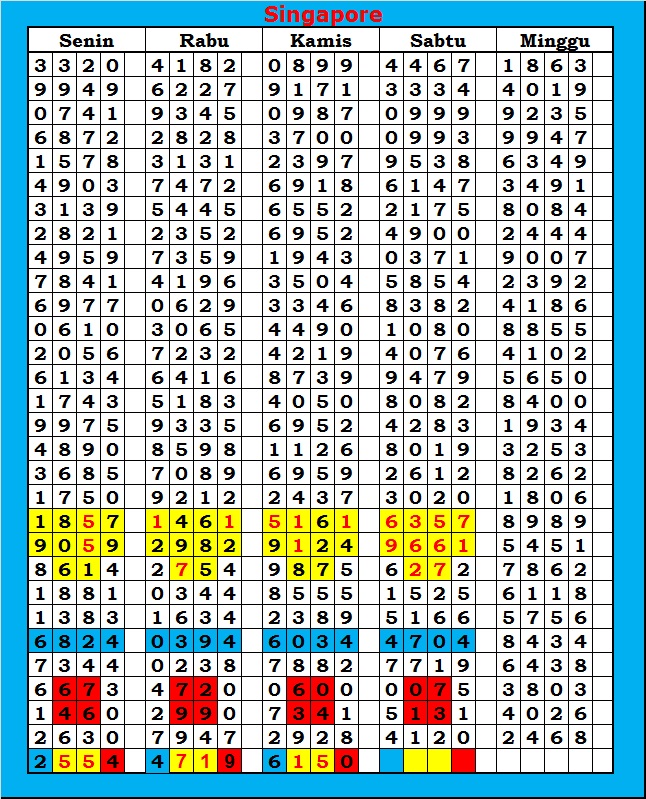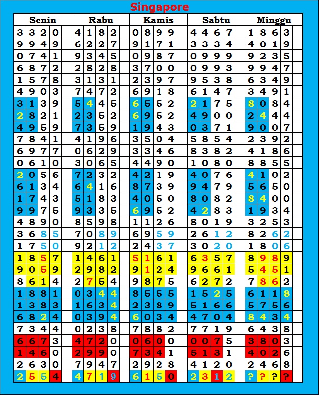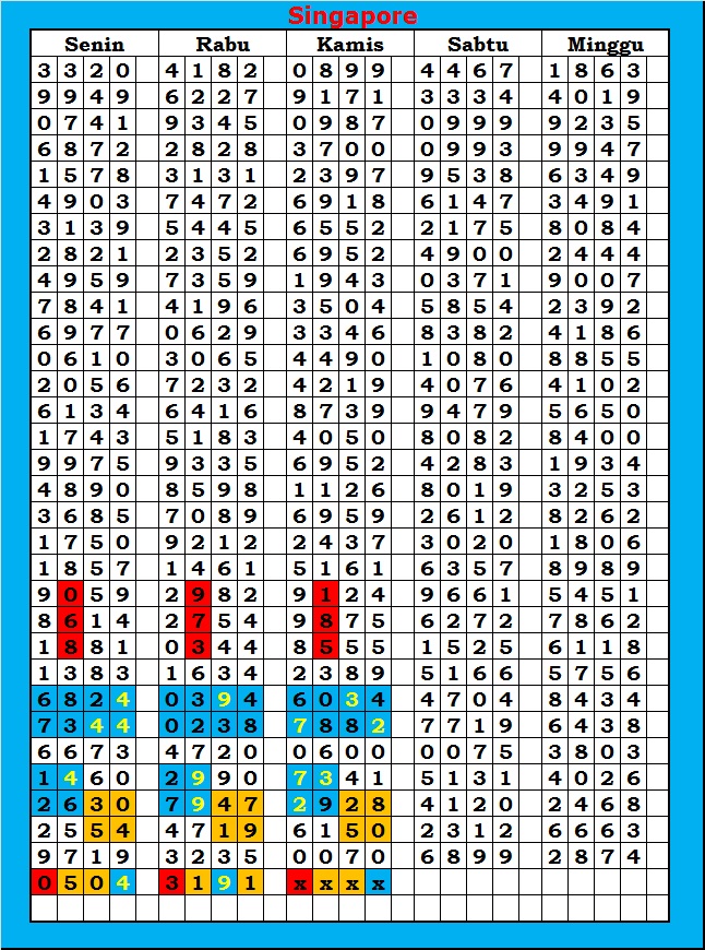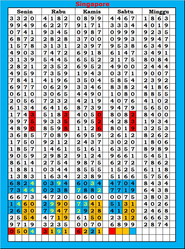 MASTER SINGAPURA Sabtu, 31-01-2026 Merupakan Prediksi Otomatis yang menggabungkan Metode Kalender Togel Dengan Rumus-rumus kontrol yang sudah terbukti keakuratanya.Gunakan Aplikasi Rekap untuk mendapatkan LN TOP. Harap Maklum Jika kadang meleset MASTER SINGAPURA kita. Jadikan ini sebagai perbandingan saja dan tetap UPS