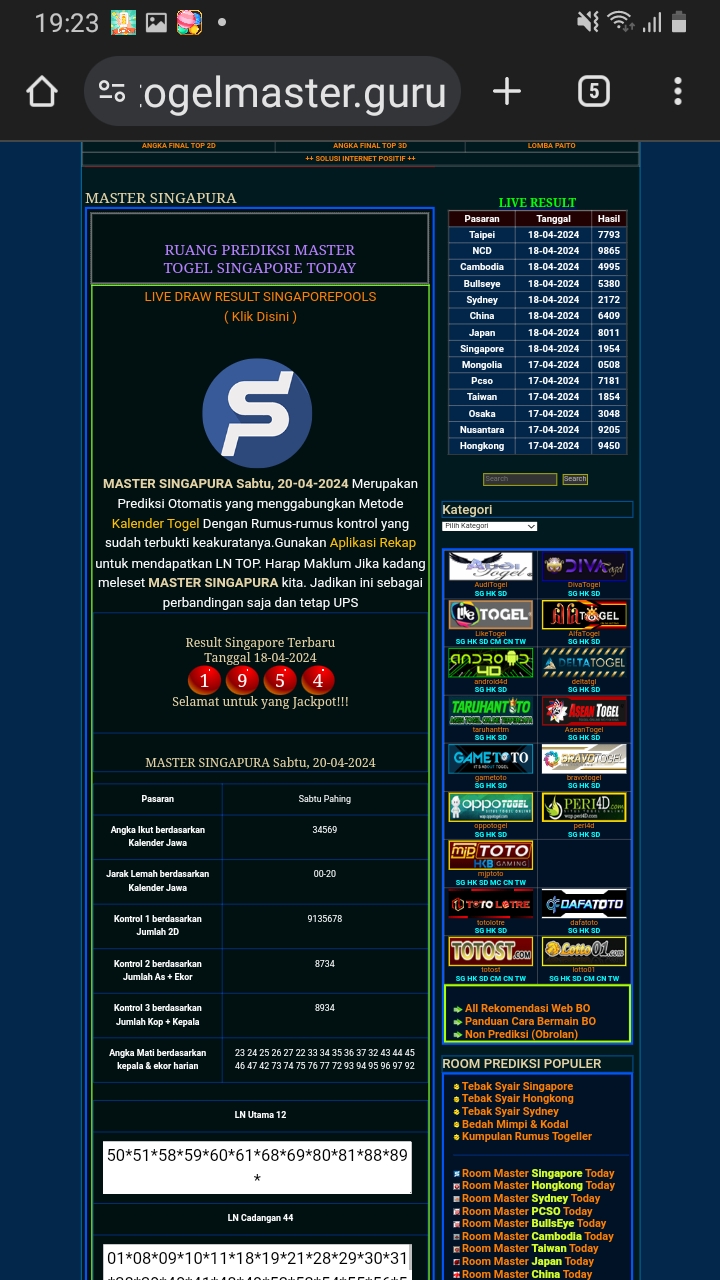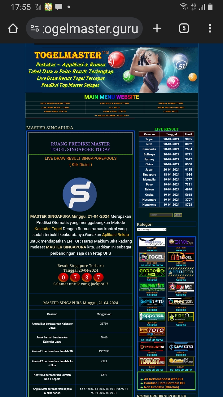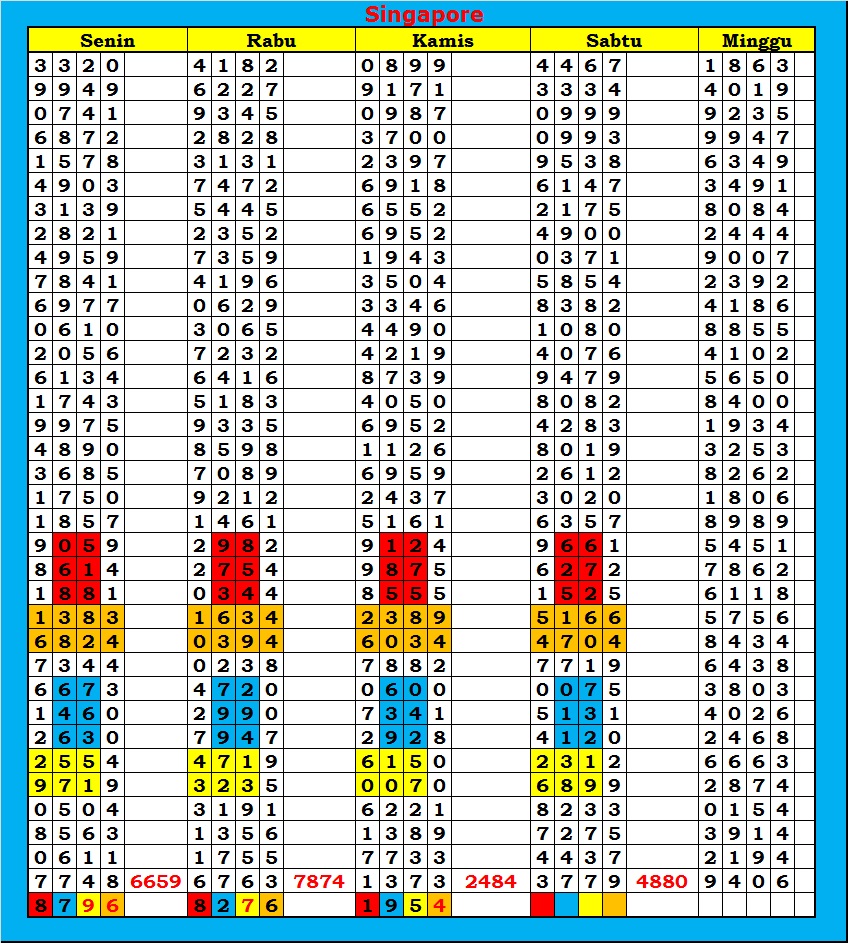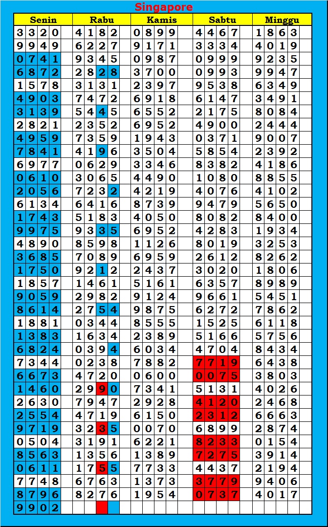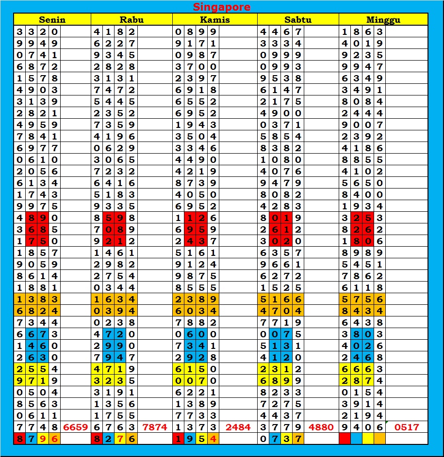 MASTER SINGAPURA Sabtu, 31-01-2026 Merupakan Prediksi Otomatis yang menggabungkan Metode Kalender Togel Dengan Rumus-rumus kontrol yang sudah terbukti keakuratanya.Gunakan Aplikasi Rekap untuk mendapatkan LN TOP. Harap Maklum Jika kadang meleset MASTER SINGAPURA kita. Jadikan ini sebagai perbandingan saja dan tetap UPS