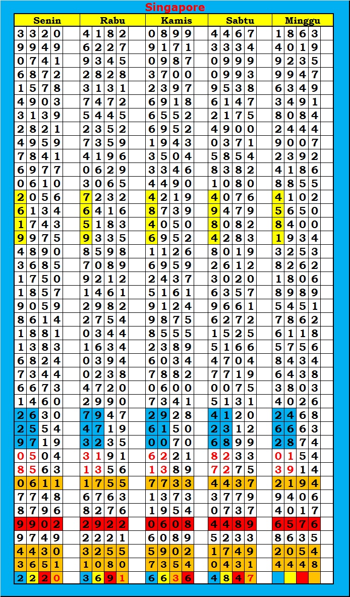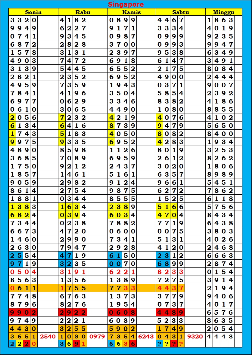 MASTER SINGAPURA Sabtu, 31-01-2026 Merupakan Prediksi Otomatis yang menggabungkan Metode Kalender Togel Dengan Rumus-rumus kontrol yang sudah terbukti keakuratanya.Gunakan Aplikasi Rekap untuk mendapatkan LN TOP. Harap Maklum Jika kadang meleset MASTER SINGAPURA kita. Jadikan ini sebagai perbandingan saja dan tetap UPS