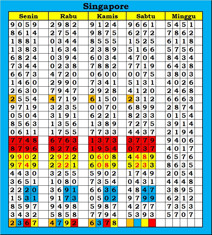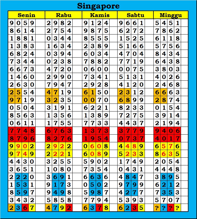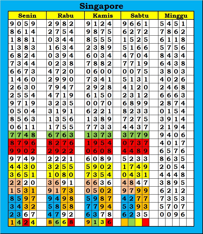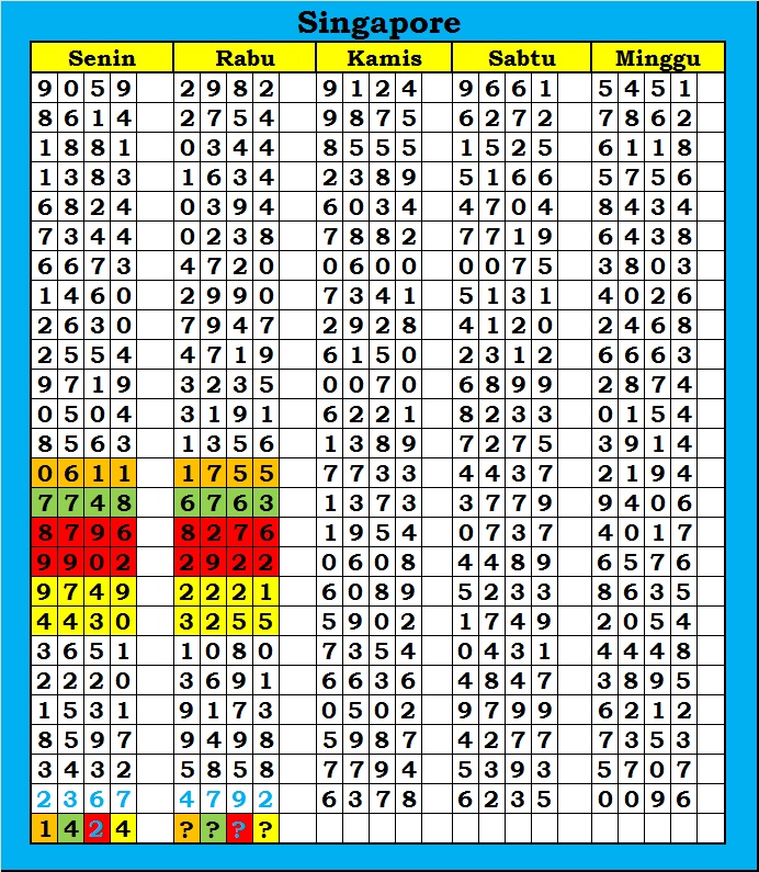 MASTER SINGAPURA Sabtu, 31-01-2026 Merupakan Prediksi Otomatis yang menggabungkan Metode Kalender Togel Dengan Rumus-rumus kontrol yang sudah terbukti keakuratanya.Gunakan Aplikasi Rekap untuk mendapatkan LN TOP. Harap Maklum Jika kadang meleset MASTER SINGAPURA kita. Jadikan ini sebagai perbandingan saja dan tetap UPS