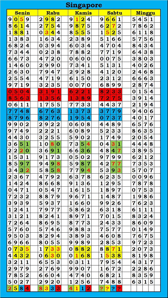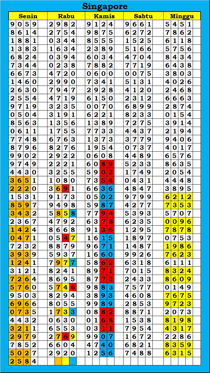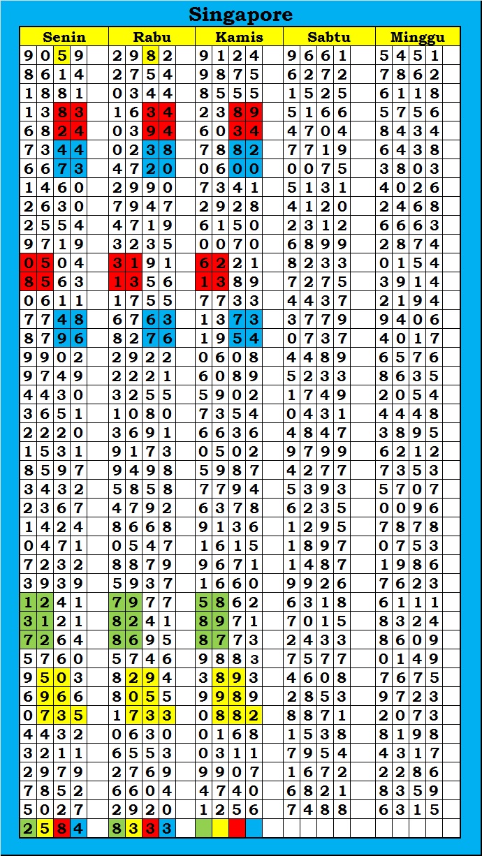 MASTER SINGAPURA Sabtu, 31-01-2026 Merupakan Prediksi Otomatis yang menggabungkan Metode Kalender Togel Dengan Rumus-rumus kontrol yang sudah terbukti keakuratanya.Gunakan Aplikasi Rekap untuk mendapatkan LN TOP. Harap Maklum Jika kadang meleset MASTER SINGAPURA kita. Jadikan ini sebagai perbandingan saja dan tetap UPS