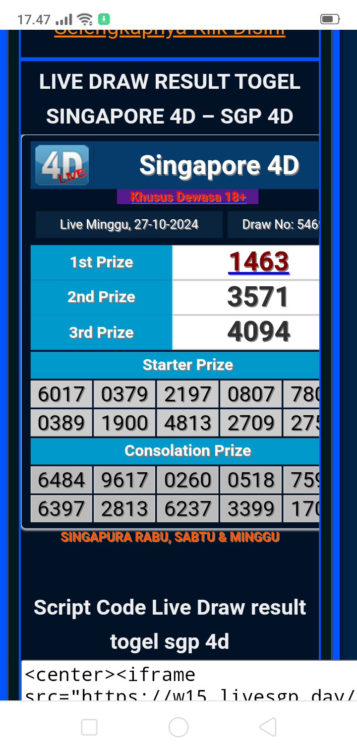 LIVE DRAW RESULT SINGAPOREPOOLS