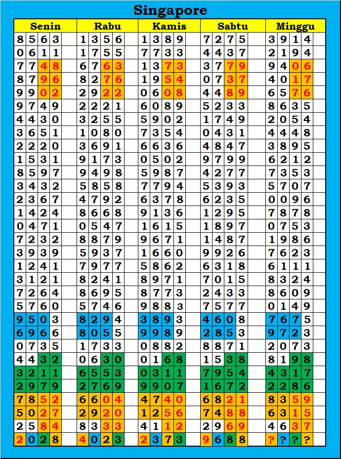 MASTER SINGAPURA Sabtu, 31-01-2026 Merupakan Prediksi Otomatis yang menggabungkan Metode Kalender Togel Dengan Rumus-rumus kontrol yang sudah terbukti keakuratanya.Gunakan Aplikasi Rekap untuk mendapatkan LN TOP. Harap Maklum Jika kadang meleset MASTER SINGAPURA kita. Jadikan ini sebagai perbandingan saja dan tetap UPS